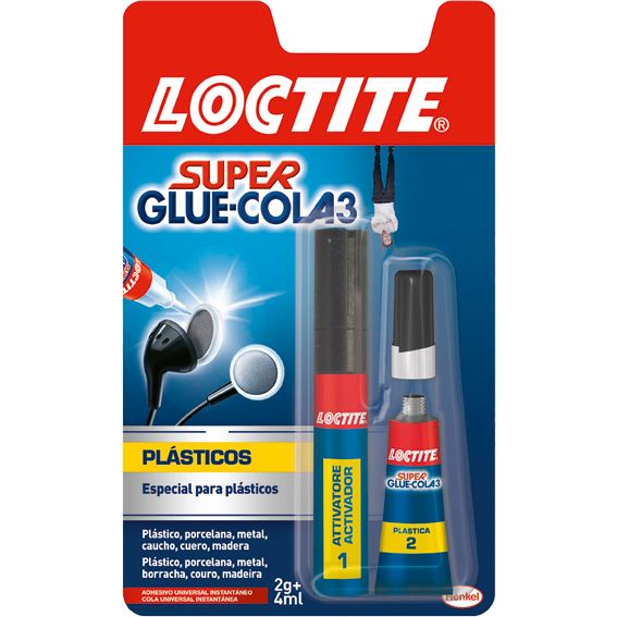 Pega en 3 segundos todo tipo de materiales plásticos: polietileno, polipropileno, metacrilato, ABS, PVC, excepto PTFE. Activador fórmula potenciada con Fixactive. Activador 4 ml. Adhesive 2 gr.