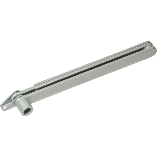 Mecanismo piñon-cremallera con frenado a la apertura integrado. Velocidad de cierre ajustable en 2 zonas diferentes y golpe final regulable. Fuerza EN 3-6. Brazo normal. Plata.
