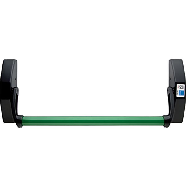 Dispositivo de embutir de una hoja. Incluye 1 barra horizontal ovalada de 900 mm, 1 soporte principal y otro secundario, 1 placa interior Ref. E1971INNE para colocar únicamente con cerraduras de la serie CF60, 1 bolsa de accesorios con tornillos de s Negro-verde