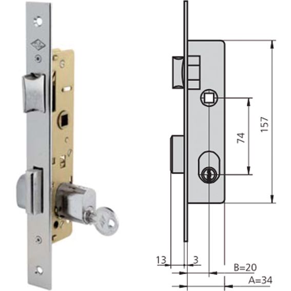Golpe y llave. Cilindro niquelado, ovalado monoblock (5964/2525). Frente inoxidable..... Entrada 20 mm.